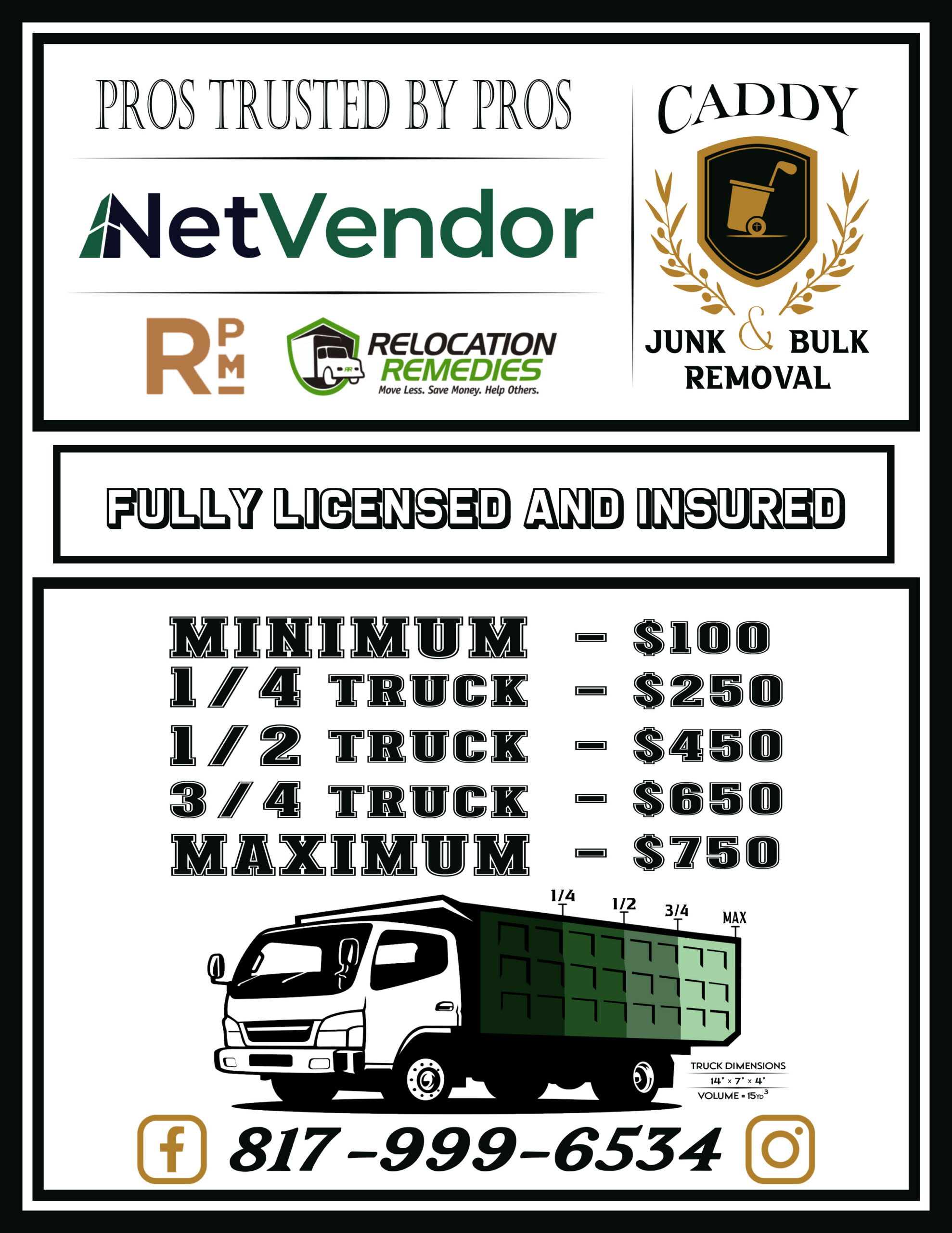 At Caddy Junk & Bulk Removal, we keep pricing straightforward so you always know what to expect. Our junk removal services are based on the amount of space your items take up in our trailer, not on complicated item-by-item charges.